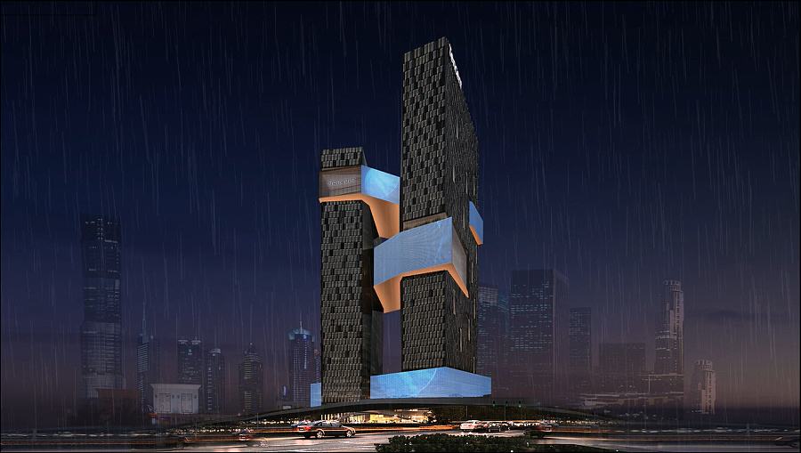 建筑高度:246m(南塔),192m(北塔) 建筑面积:25.12万m2(办公)、1.5万m2(商用)